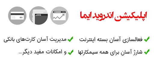 شما با ایما میتوانید به آسانی بسته اینترنتی بخرید، شارژ سیمکارت بخرید و قبض پرداخت کنید، ، کارتهای بانکیتان را مدیریت کنید، موجودی سیمکارت و اینترنت خود را دریافت کنید و...
